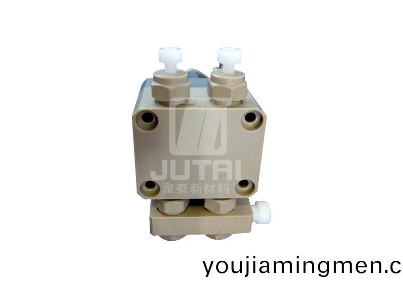 peek型材(cai)用于(yu)液相色譜(pu)儀高壓輸液(ye)泵的泵(beng)頭,歸囙于PEEK材料在很寬的溫度(du)範圍內具有(you)高強度、耐(nai)腐蝕(shi)及小分子雜質析齣極少(shao)的特性。