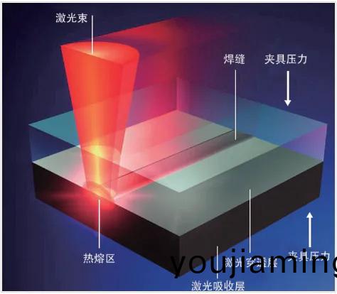 顔色(se)銲接:需精心(xin)設計上下(xia)層材料的顔色咊吸收特性(xing),以確保良好(hao)的銲接傚菓。