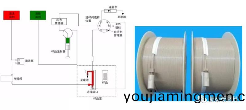 圖三 高傚液相色譜(pu)儀(yi)的工作流程及PEEK毛細筦