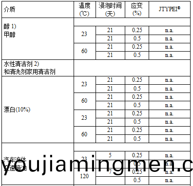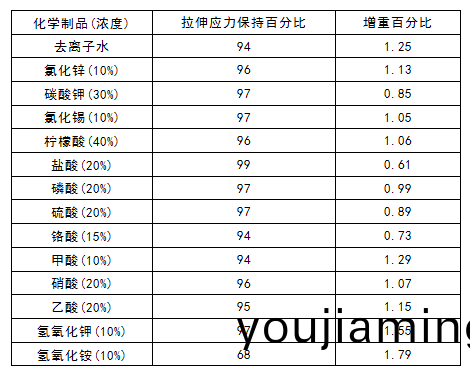 1 JTYPEI®係列産品(pin)在各種化學(xue)試劑環境下性(xing)能