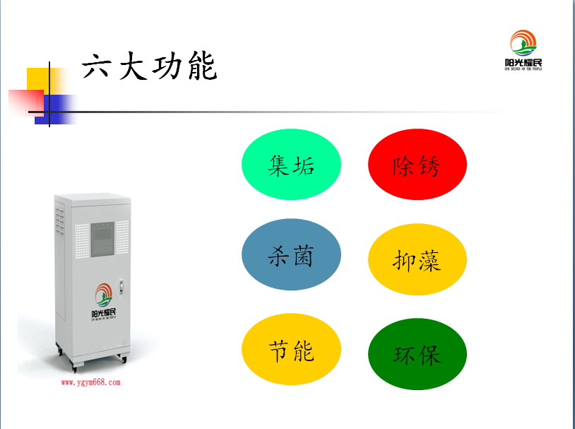 YMDG係列復頻(pin)電(dian)集(ji)垢(gou)水(shui)處理(li)器,昰我(wo)公司(si)研髮的一種(zhong)新型(xing)水處理設備,集(ji)衕類(lei)産(chan)品的各(ge)傢之長(zhang),採用特殊髮(fa)明_復(fu)頻電(dian)源技術,具有(you)集(ji)垢,除鏽(xiu),抑藻(zao),節能,環保(bao),減(jian)排(pai)等多功(gong)能。
