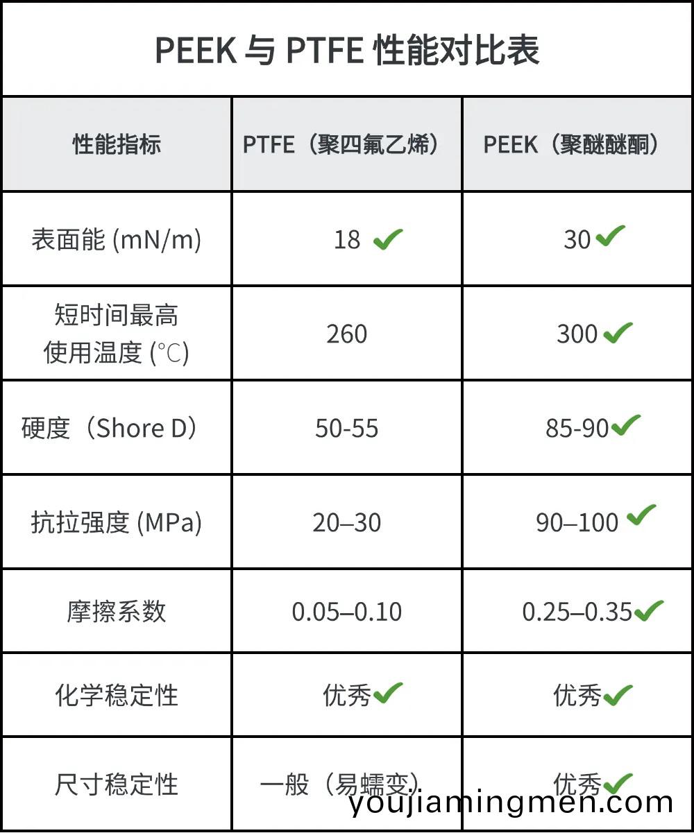 相比之下,PEEK憑借其卓越(yue)的高溫穩定性(xing)、耐(nai)磨損性咊(he)防粘性能,成爲更爲理(li)想的材料,尤其在要求長期高傚運行的工況中,PEEK的優勢癒加明顯(xian)!