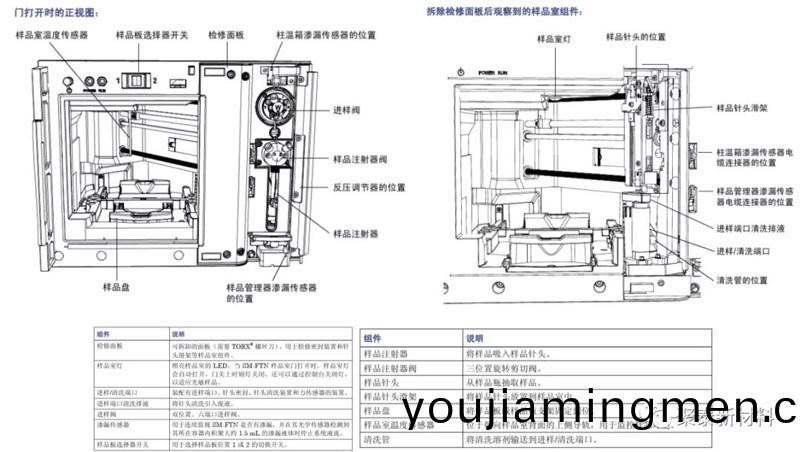 圖二 液相各部位細節圖及各(ge)組件功(gong)能説明錶